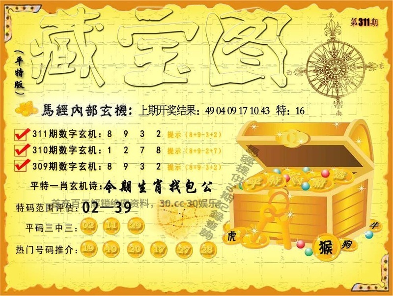 310期:平特藏宝图玄机:【今期生肖在北边】 解:今期生肖在北边,解猴,平特猴 推荐平码:29.30.10.27.37.38 开奖结果:49.04.09.17.10.43T16 |